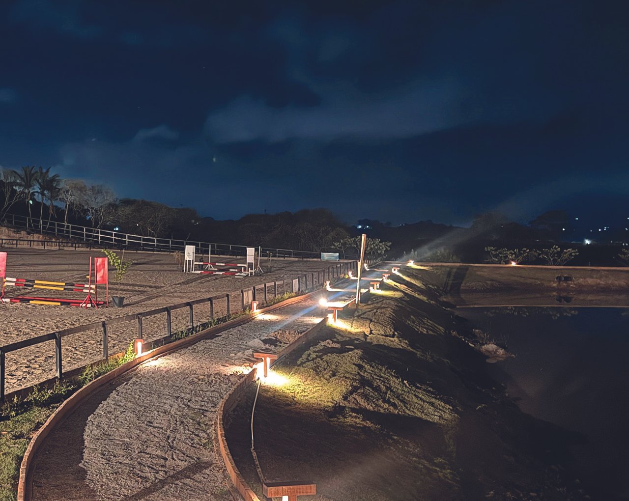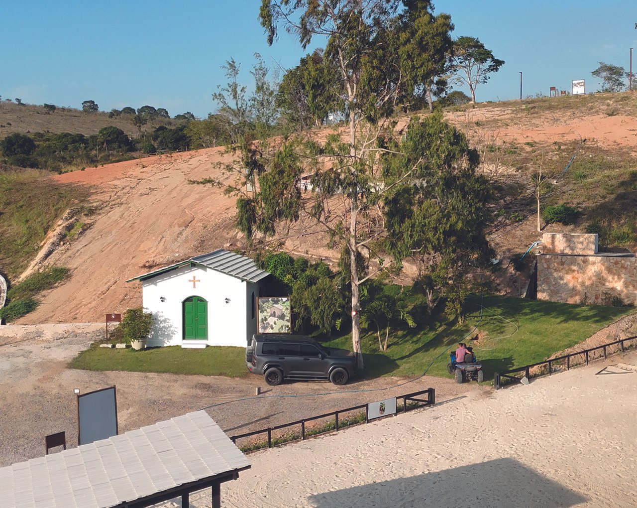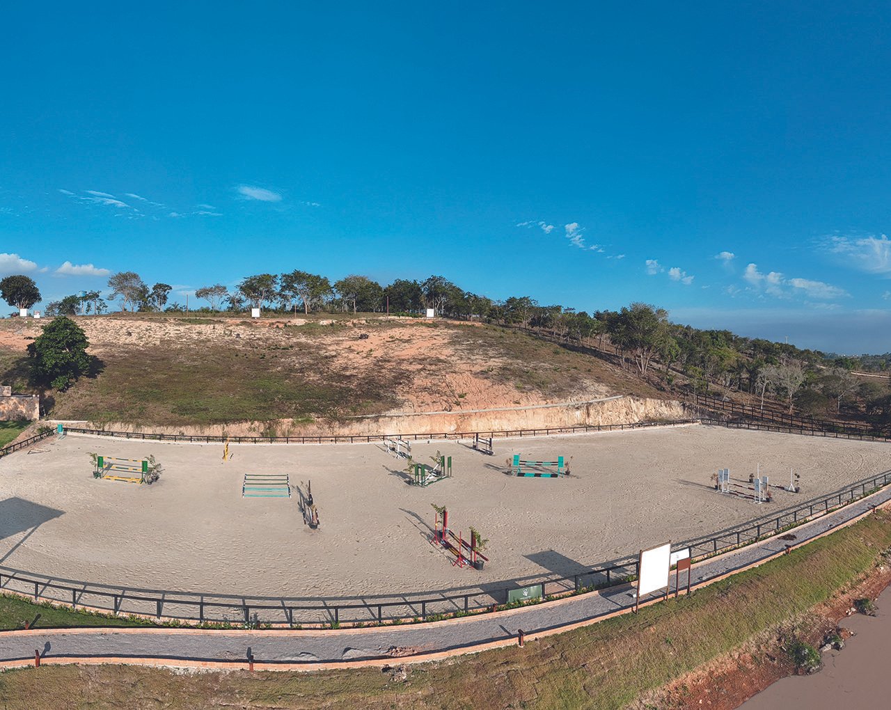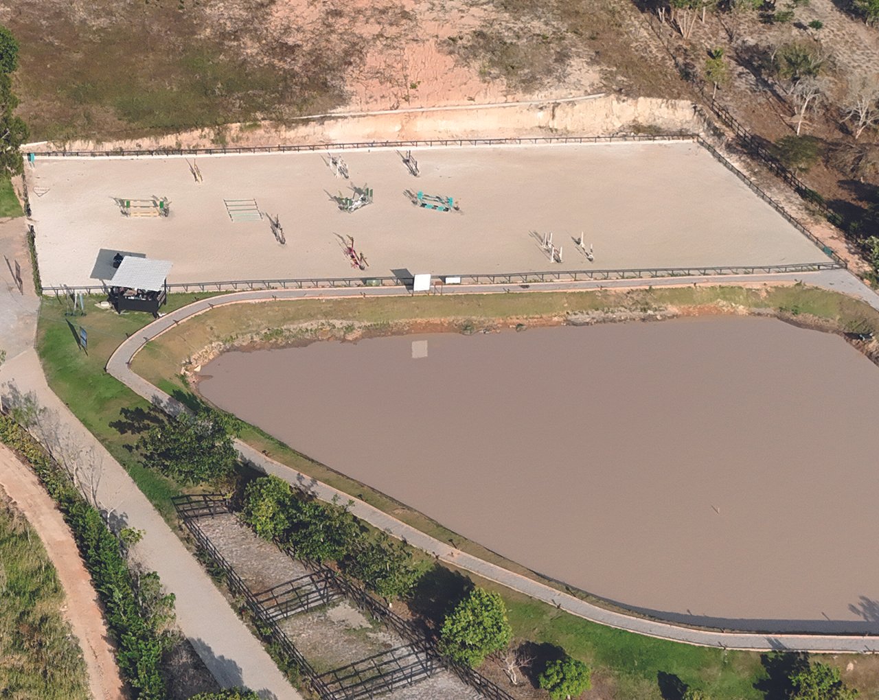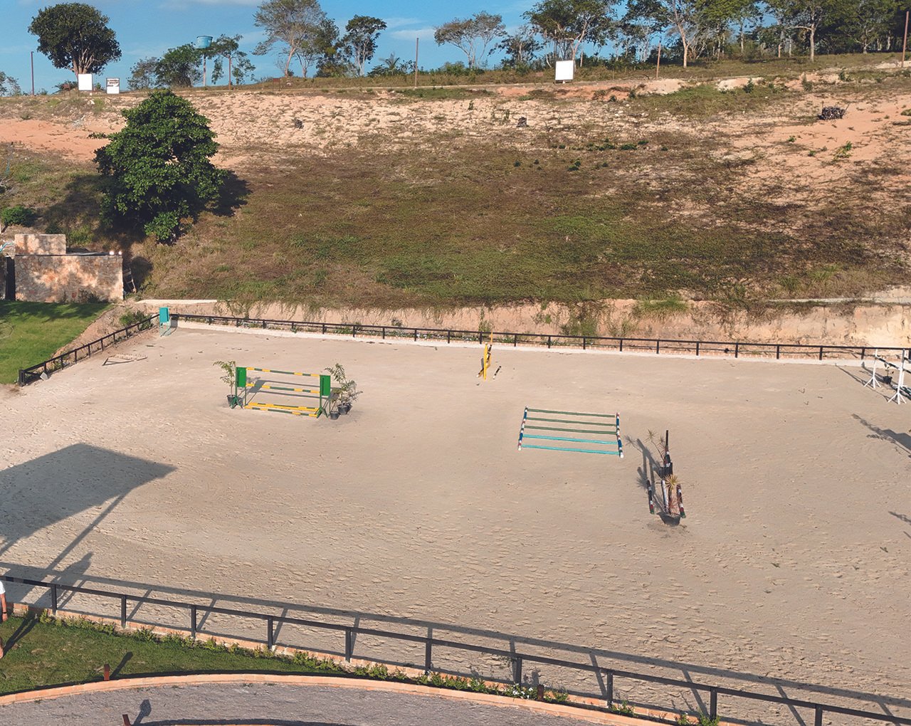 Platô Inferior: Área comum: Guarita, Deck e Salão de Festas, Pista de Cooper, Pista Equestre, Capelinha, Espaço Kids, Baias e Fazendinha.